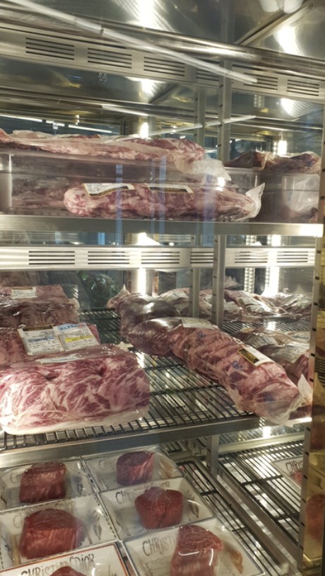 진한 마블링의 한우 꽃등심. - 안심(150g): 55,000원