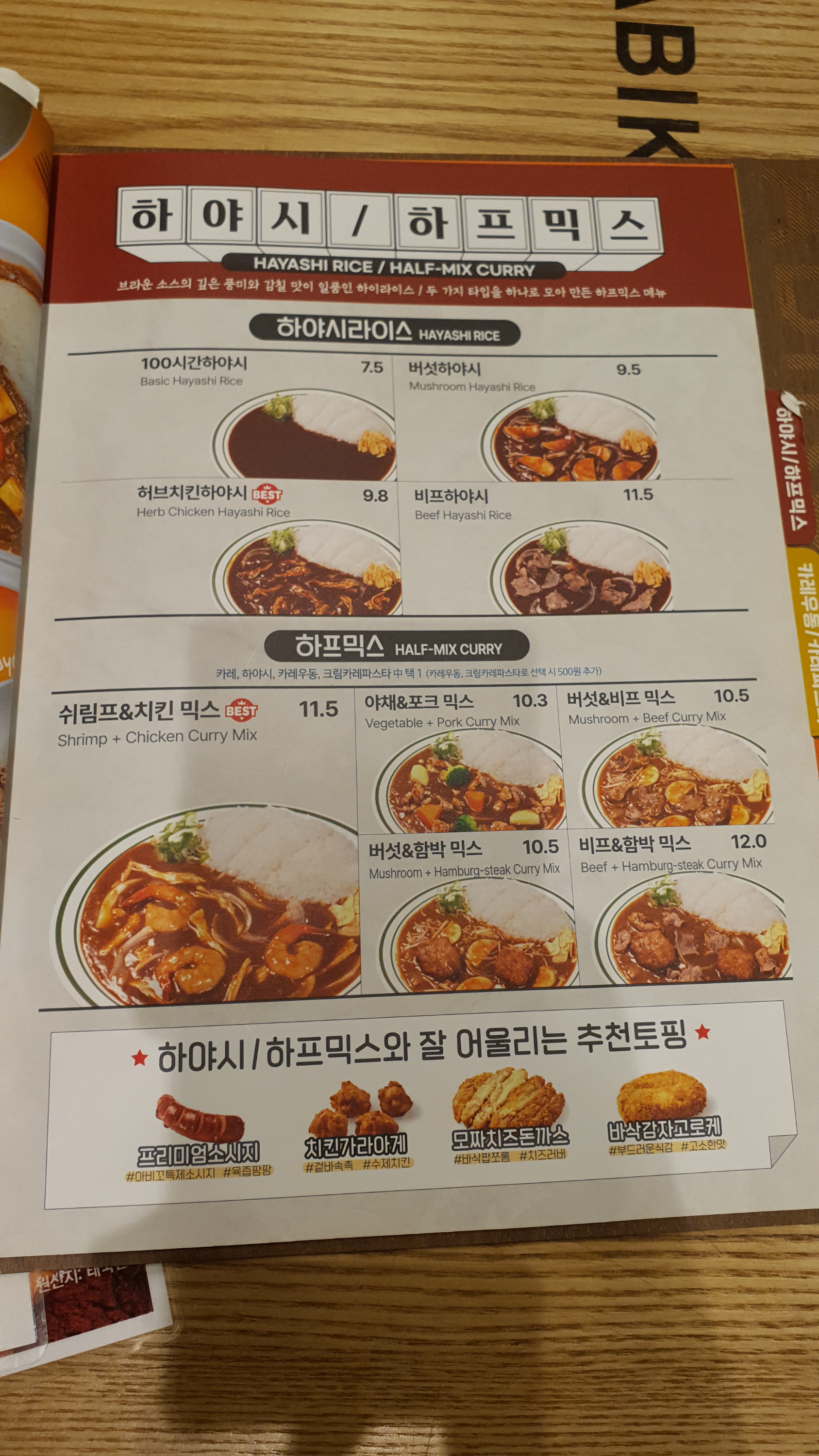 여기는 메인,과 사이드, 맵기까지 개별적으로 선택할 수 있어서, 나의 취향에 맞는 카레를 먹을 수 있어서 너무 좋았어요!