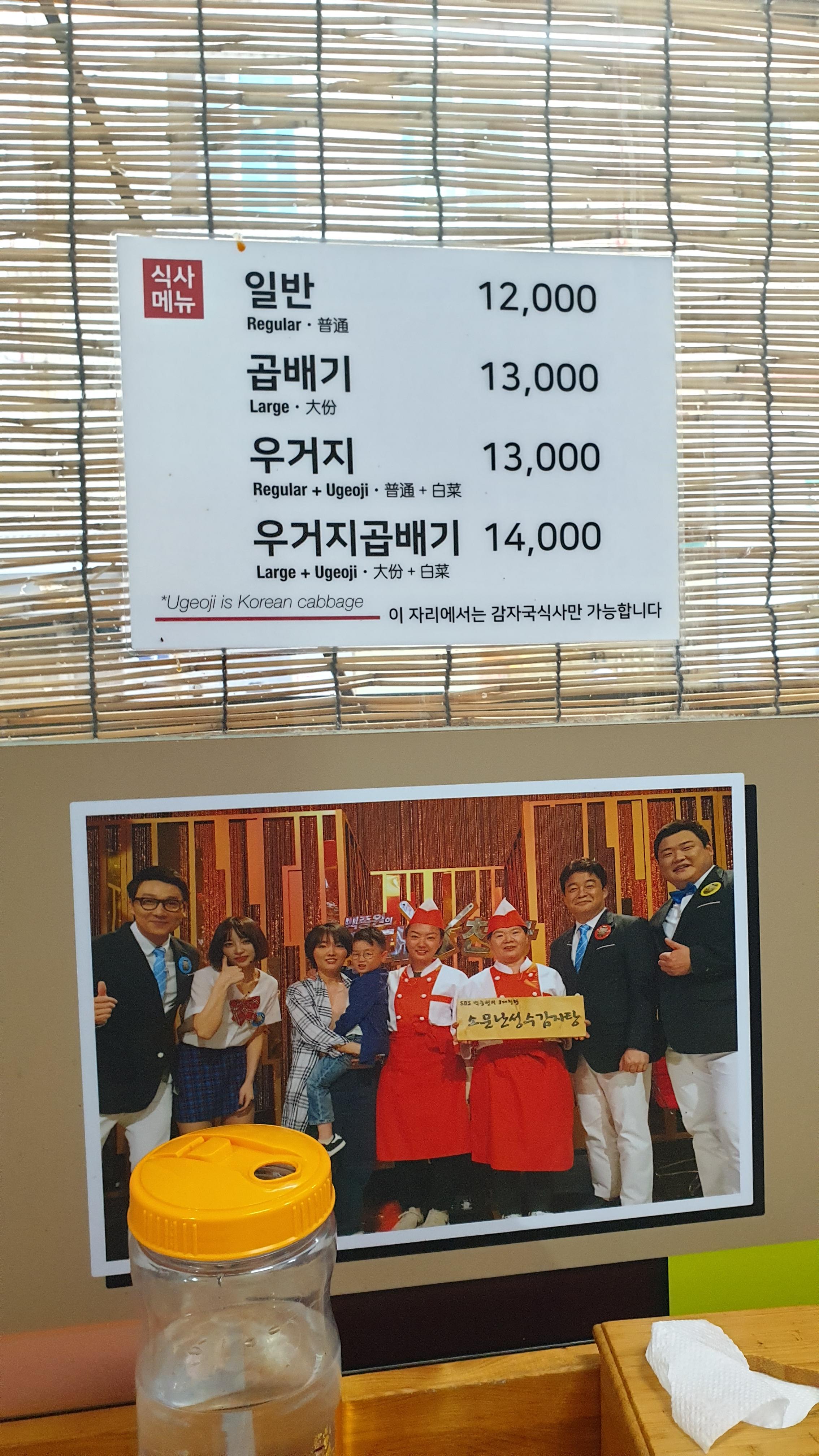 감자국식사 우거기 : 13,000원